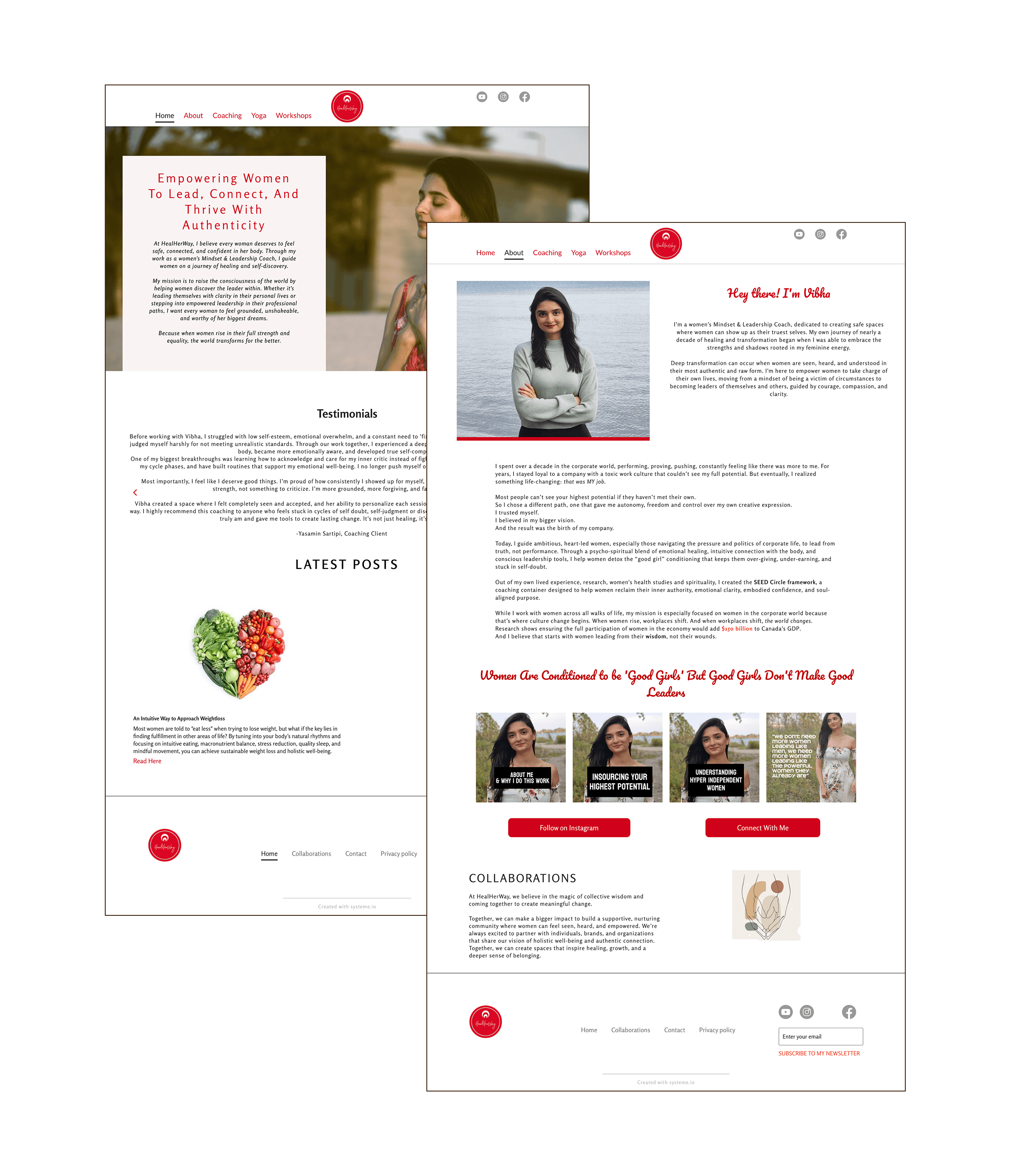 Vibha already had a strong body of work and years of experience. What was missing was a website that clearly reflected her essence, what she does, who it’s for, and made her work easy to share as she expanded into workshops and corporate work.